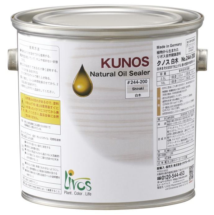 【送料無料】リボス自然健康塗料 クノス白木 白木調仕上(艶なし) 木部用 [244-200/0.75・2.5・10]